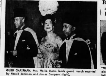 The 1959 Beaux Arts Ball was held on Friday, February 27th in the ballroom of the Concourse Plaza Hotel. The theme of the ball was Fantasy and Dreams. The annual Beaux Arts Ball was a major social event organized by the New York Guild of the National Urban League. Harold Jackman , frequently crowned King of the ball, escorted Guild’s president Mollie Moon. See Tanisha C. Ford’s biography Our Secret Society for more information about Mollie Moon. Also see Ebony’s May 1954 article on the Beaux Arts Ball.
