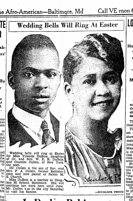 Yolande DuBois traveled from Baltimore to New York City in a special train car along with many of her 16 bridesmaids. Her wedding to poet Countee Cullen took place on Easter Monday, April 9, 1928.
