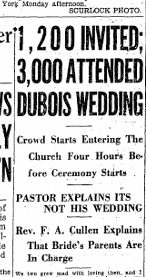 Salem Methodist Episcopal Church, with Reverend Frederick Cullen as Pastor, was the site of the Easter Monday, April 9, 1928 wedding between Yolande DuBois, daughter of WEB and Nina DuBois, and Countee Cullen, adopted of Carolyn and Reverend Cullen. The nuptials were held at night. In his first biography The Big Sea, Langston Hughes described the wedding as follows: “The Countee Cullen wedding [italics mine] was another spectacle that had Harlem talking for a long time. . .It was the social -literary event of the season and very society.”